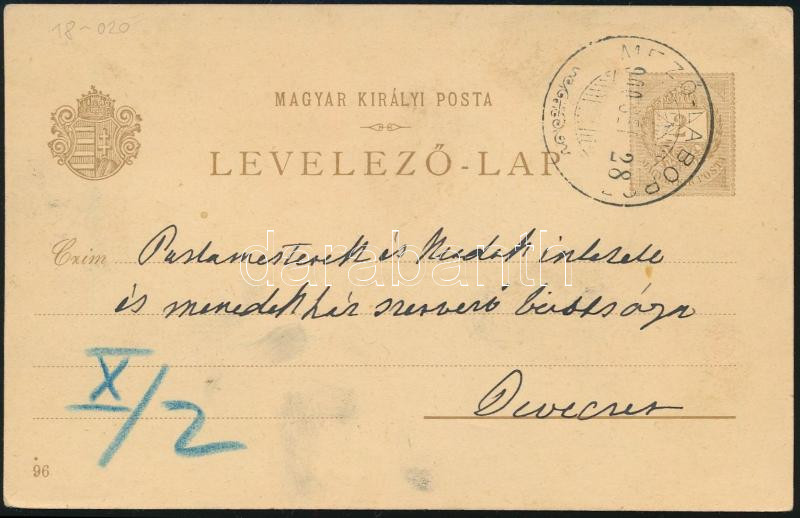 1900 Millenniumi díjjegyes levelezőlap (Huszártoborzó) "MEZŐ-LABORCZ" / 2kr millennial PS-card "MEZŐ-LABORCZ" (Image)(Image 1)