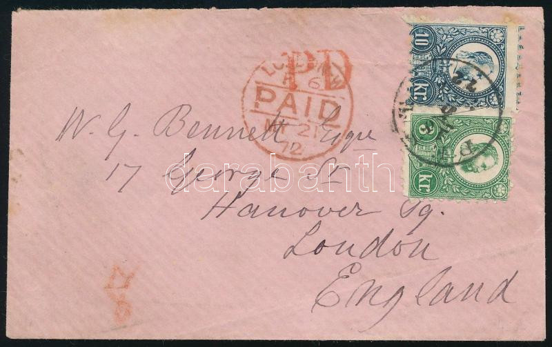 Réznyomat 3kr + elfogazott 10kr levélen Londonba. Ritka kombináció külföldre küldött levélen! / 3kr + 10kr with shifted perforation on cover to London. RR!