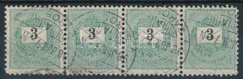 3kr négyescsík 11 1/2 fogazással, lemezkombináció (Image)(Image 1)