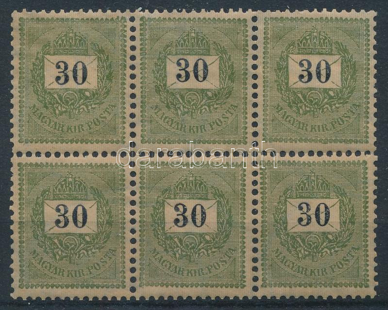 30kr hatostömb, lemezösszefüggés, szakadt boríték vonal. Összefüggésben nagyon ritka! / Mi 51Y block of 6 with plate flaw (Image)(Image 1)