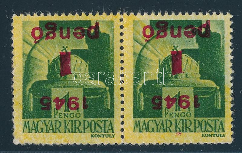 Kisegítő 1P/1P pár fordított felülnyomattal / Mi 800 pair with inverted overprint Signed: Leitold (Image)(Image 1)