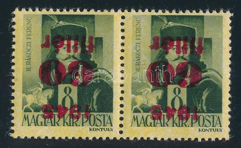 Kisegítő 60f/8f pár fordított felülnyomattal / Mi 794 pair with inverted overprint Signed: Leitold (Image)(Image 1)