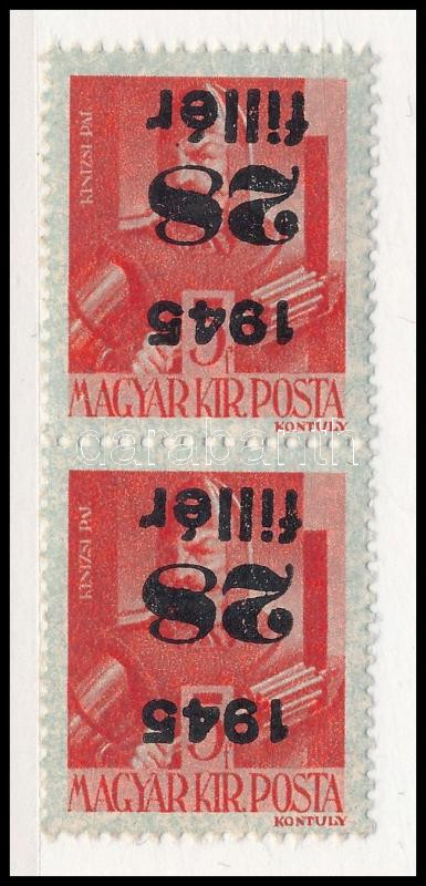 Kisegítő 28f/5f pár fordított felülnyomattal / Mi 784 pair with inverted overprint Signed: Leitold (Image)(Image 1)