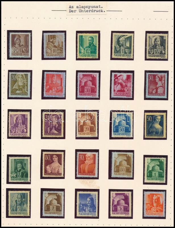 Kisegítő I. 25 értékes teljes sor felülnyomás nélkül, csak alapnyomattal. A teljes sor nagyon ritka kínálat! + felülnyomott sorozat / complete set without overprint. RR! + set with overprint (Image)(Image 1)