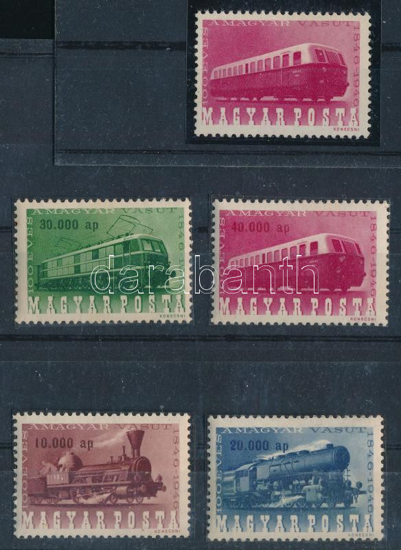 Vasútjubileum 40.000 ap értékszám nélkül. Rendkívül ritka, az egyik legismertebb magyar különlegesség, luxus minőségben! (900.000) + támpéldány sor / Mi 946, 40.000 ap omitted. Very rare error in luxury condition! Certificate: Glatz (Image)(Image 1)