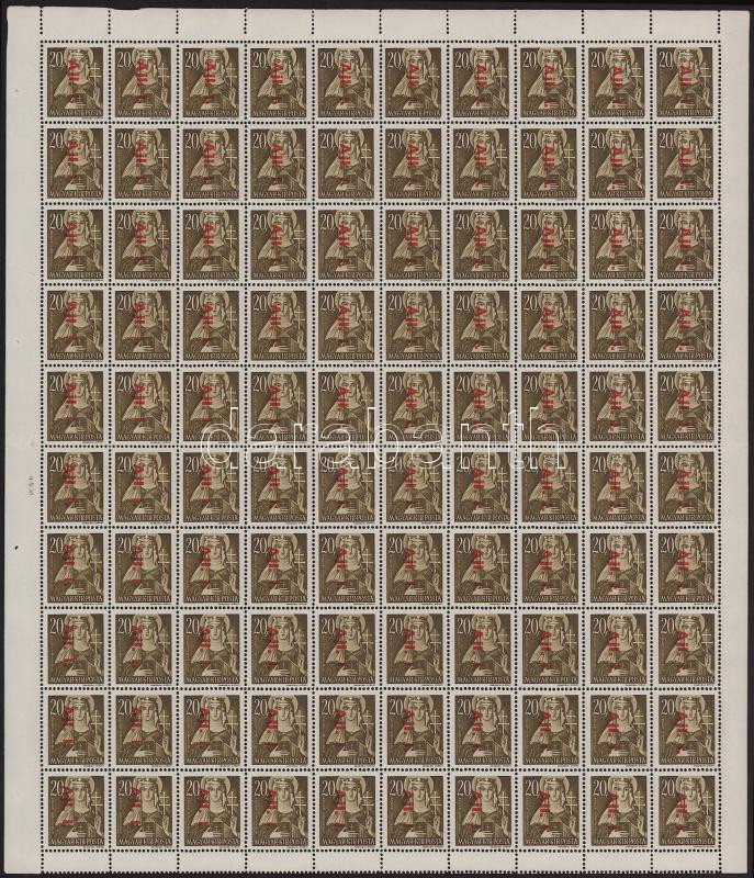 Betűs Ajl.I./20f hajtott teljes ív, hibátlan, tévnyomat nélkül! Alul kettős fogazással. Alig néhány ilyen ív maradt csak fent! / Mi 857 folded complete sheet, without the 857I. plate variety. RRR! (Image)(Image 1)