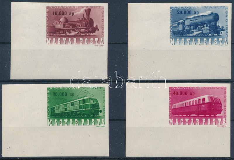 Vasútjubileum vágott ívsarki sor (200.000) / Mi 943-946 imperforated corner set (Image)(Image 1)