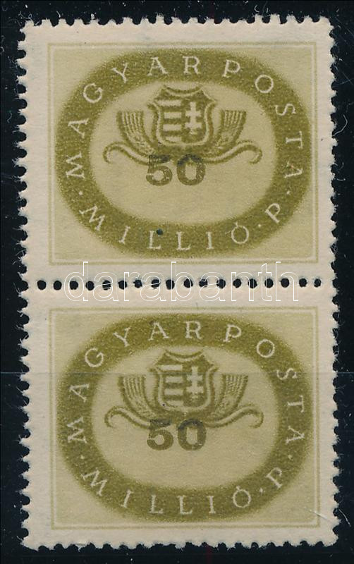1946 Milliós 50 Millió P függőleges pár eltolódott értékszámmal / Mi 904 pair with shifted numbers (Image)(Image 1)