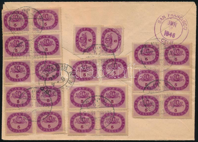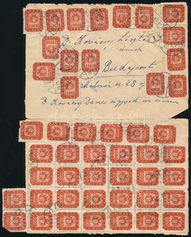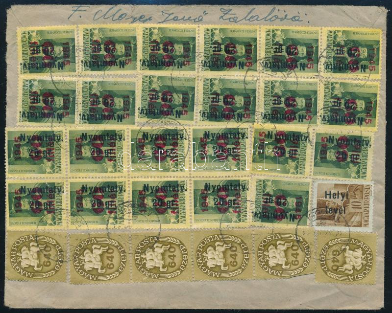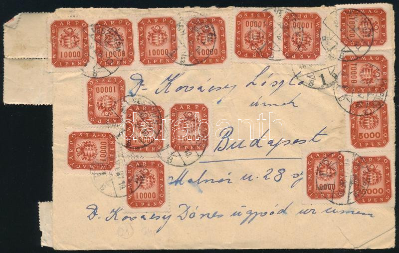 (21. díjszabás) Távolsági levél 48 db Milpengő bélyeggel "VESZPRÉM" - Budapest / Domestic cover with 48 stamps (Image)(Image 1)