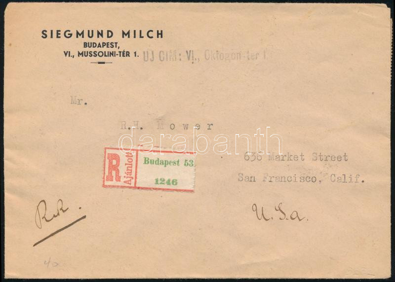 (15. díjszabás) Ajánlott levél 24 db bélyeggel az Egyesült Államokba / Registered cover with 24 stamps to the USA (Image)(Image 1)