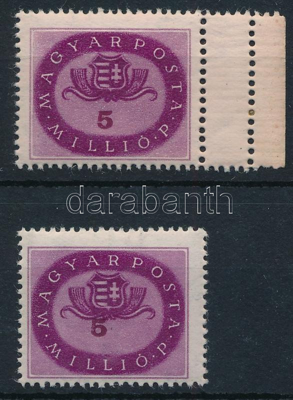 1946 2 db Milliós 5 millió P: kettős fogazás, elcsúszott értékszám / 2 x Mi 901 double perforation, shifted number (Image)(Image 1)