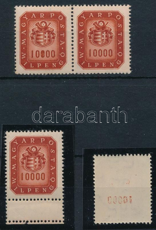 1946 3 db Milpengős 10.000 MP bélyeg: lemezhiba, kettős fogazás, gépszínátnyomat (Image)(Image 1)