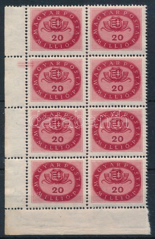 1946 Milliós 20 millió P ívsarki 8-as tömb festékcsíkkal / paint stripe (Image)(Image 1)