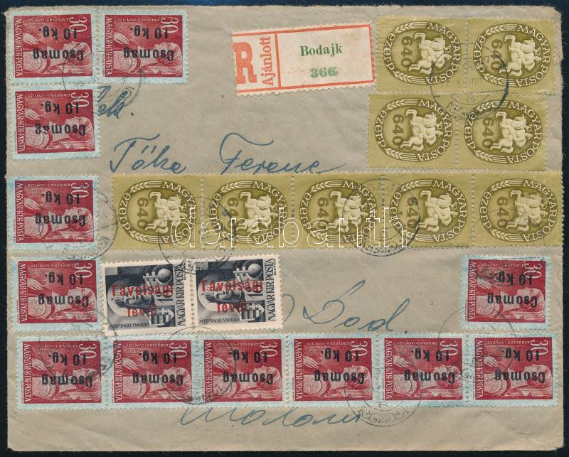 (16. díjszabás) Ajánlott távolsági levél 53 db bélyeggel "BODAJK" / Domestic registered cover with 53 stamps (Image)(Image 1)