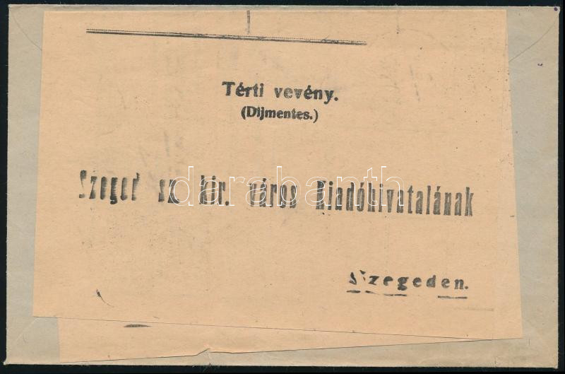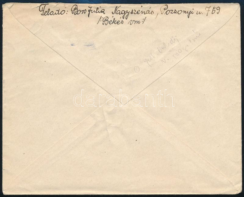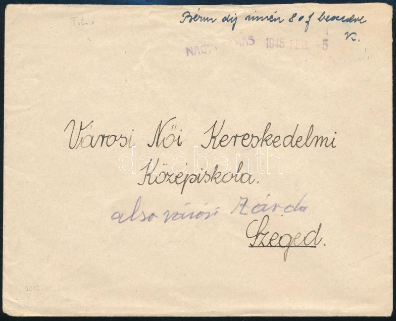 1945.febr.5. Levél készpénzes bérmentesítéssel Nagyszénásról Szegedre / Cover with handwritten franking (Image)(Image 1)