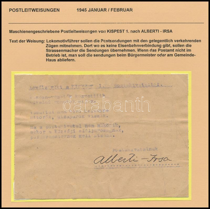 Levélzárlat a Kispest I. postahivataltól (úttörők elírással a szövegben) Albertirsára / Road guard cover with plate variety (Image)(Image 1)