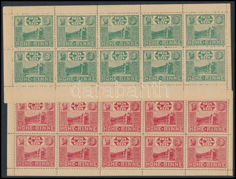 Rinne 1924 fogazott piros és zöld 10-es kisív (220.000) (zöld elvált fogak) / red and green minisheets of 10 (green aparted perfs) (Image)(Image 1)