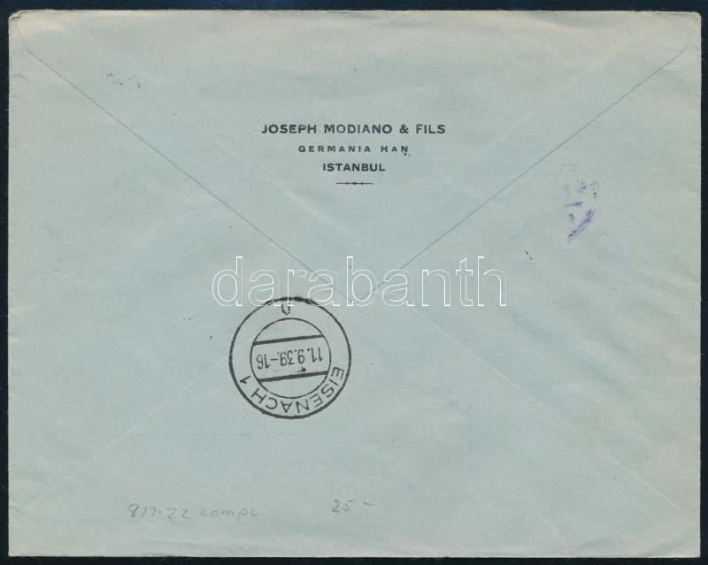 1939 Ajánlott levél amerikai-török barátság bélyegekkel, "ISTANBUL" - "EISENACH 1" / Registered cover with American-Turkish friendship stamps, "ISTANBUL" - "EISENACH 1" (Image)(Image 1)