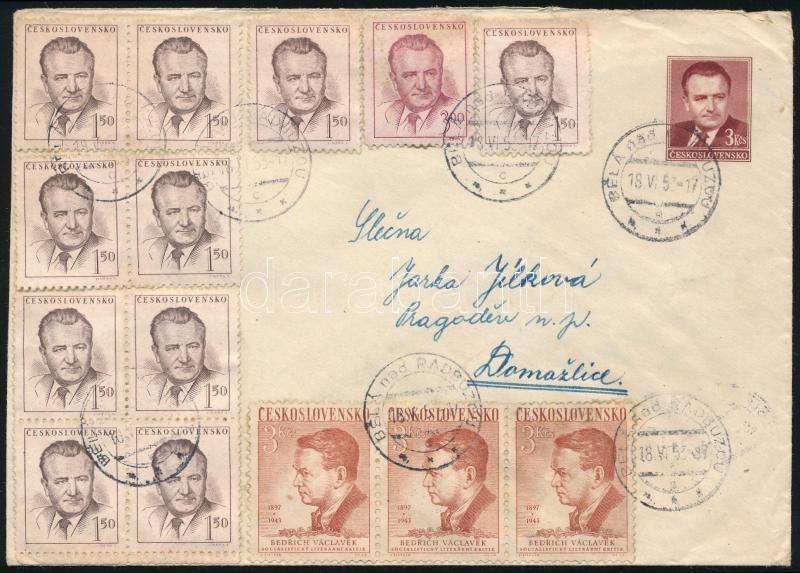 1953 Díjjegyes levél 14 bélyeges díjkiegészítéssel / PS-cover with 14 stamps (Image)(Image 1)