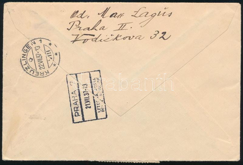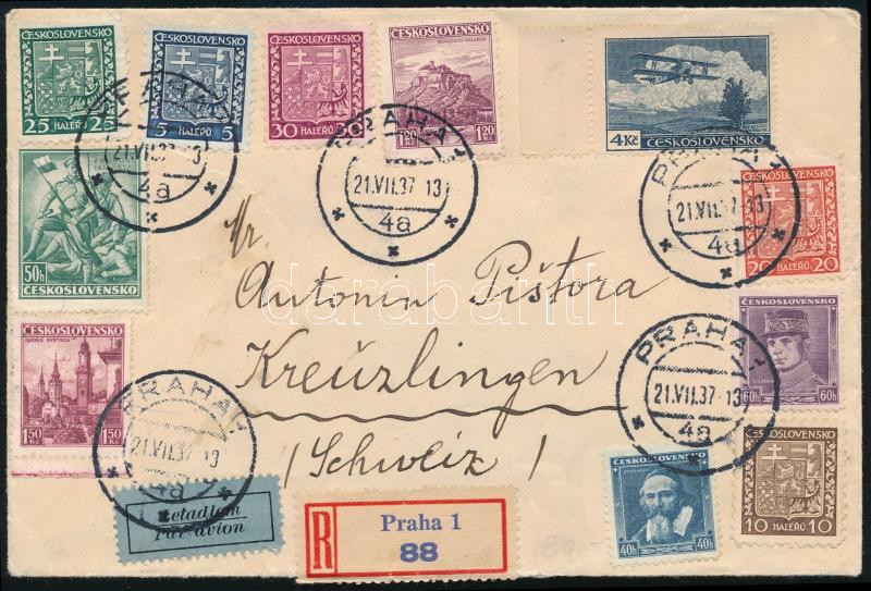 1937 Ajánlott légi levél 11 db bélyeggel / Registered airmail cover with 11 stamps to Switzerland (Image)(Image 1)
