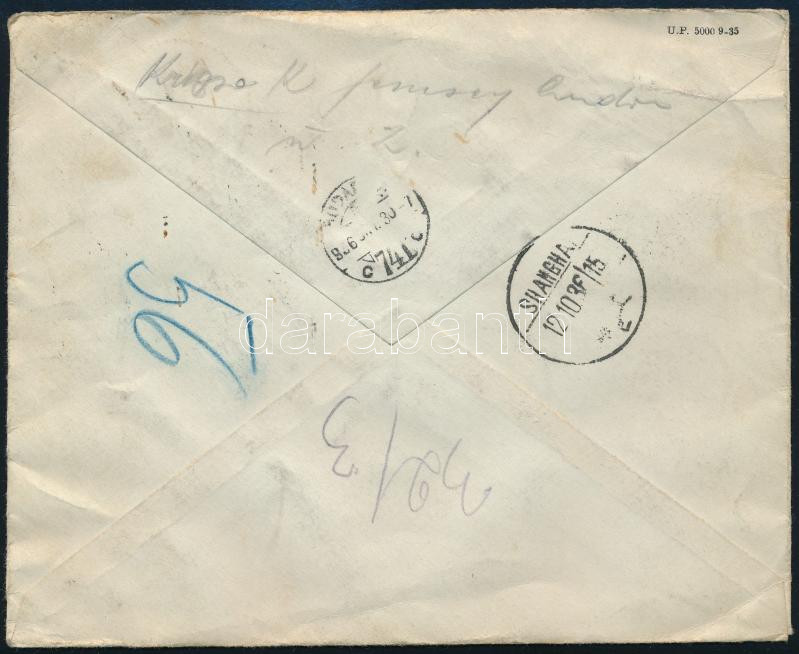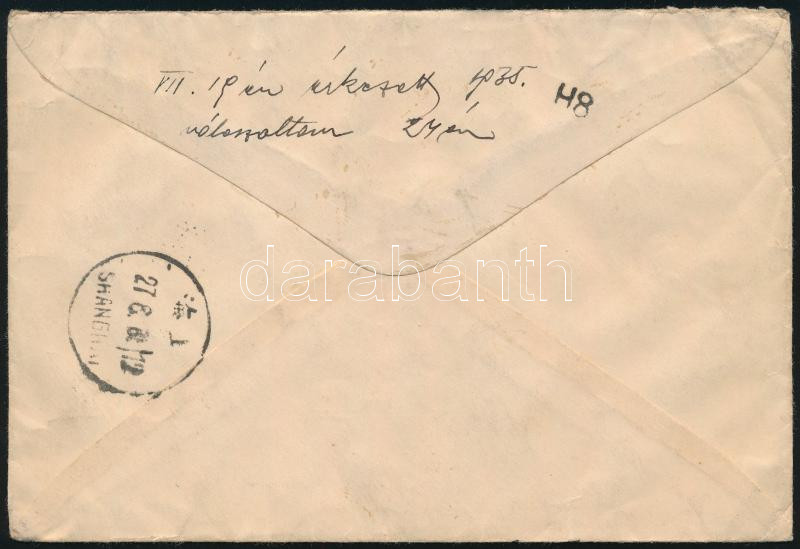 1936 Ajánlott levél "SHANGHAI" - Budapest / Registered cover to Budapest (Image)(Image 1)