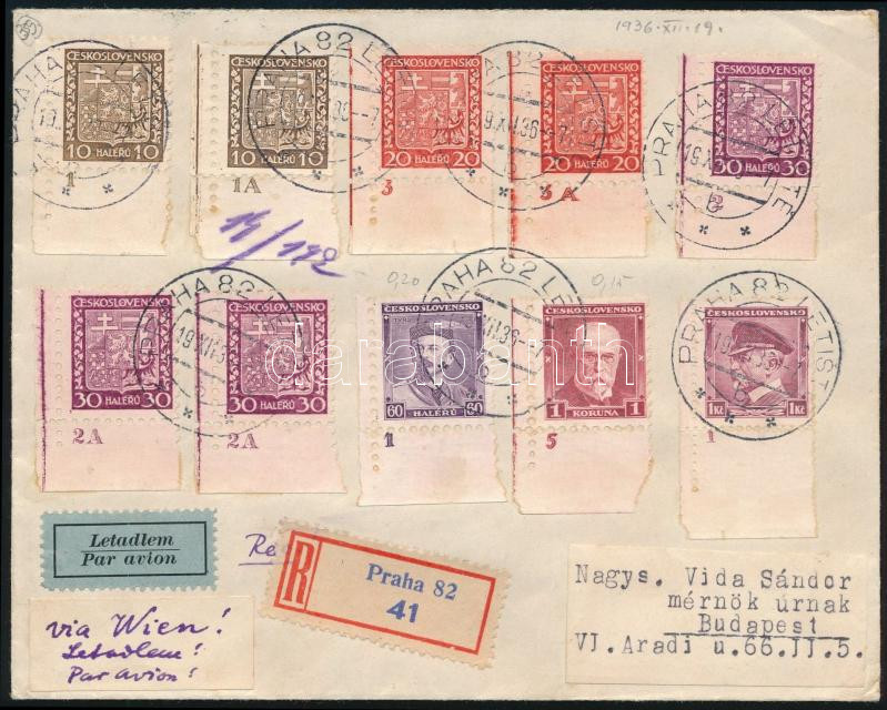 1936 Ajánlott légi levél 14 db bélyeggel / Airmail registered cover with 14 stamps (Image)(Image 1)