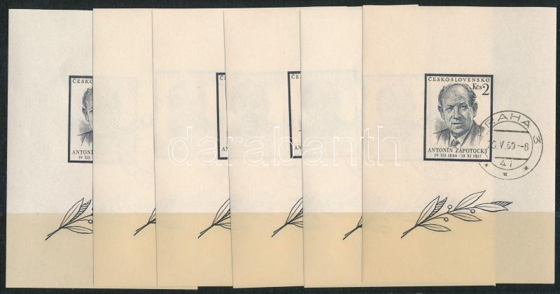 Csehszlovákia 1957 6 db Zapatocki blokk Mi 17II (mindkét termésen van vonalka) (Mi EUR 360.-) (Image)(Image 1)