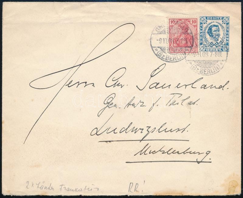 1908 Montenegrói díjjegyes boríték német bélyeggel kiegészítve Berlinből / Montenegro PS-cover with German additional franking "BERLIN" - Ludwigsburg