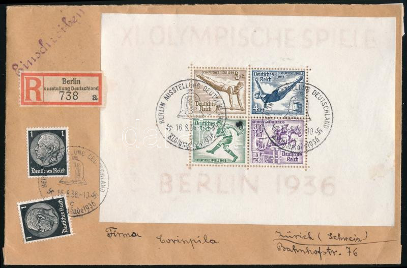 1936 Ajánlott levél Olimpia blokkal / Registered cpver with Olympiad block (Image)(Image 1)