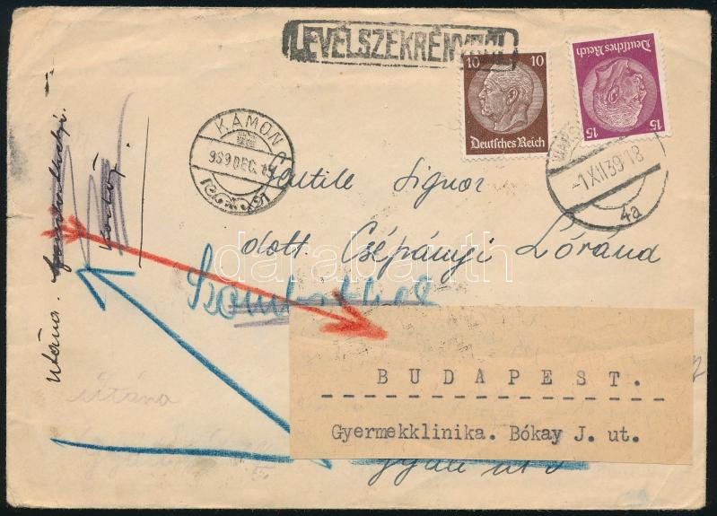 1939 Levél Varsóból német bélyegekkel Szombathelyre, onnan továbbküldve Budapestre / Cover from Warsaw with German stamps to Hungary, redirected