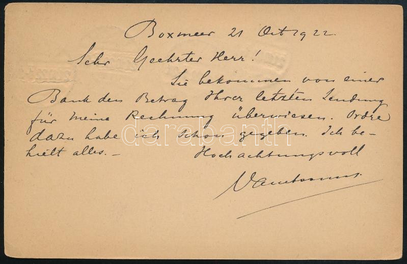1922 Díjkiegészített díjjegyes levelezőlap Budapestre / PS-card with additional franking "GOCH" (Image)(Image 1)