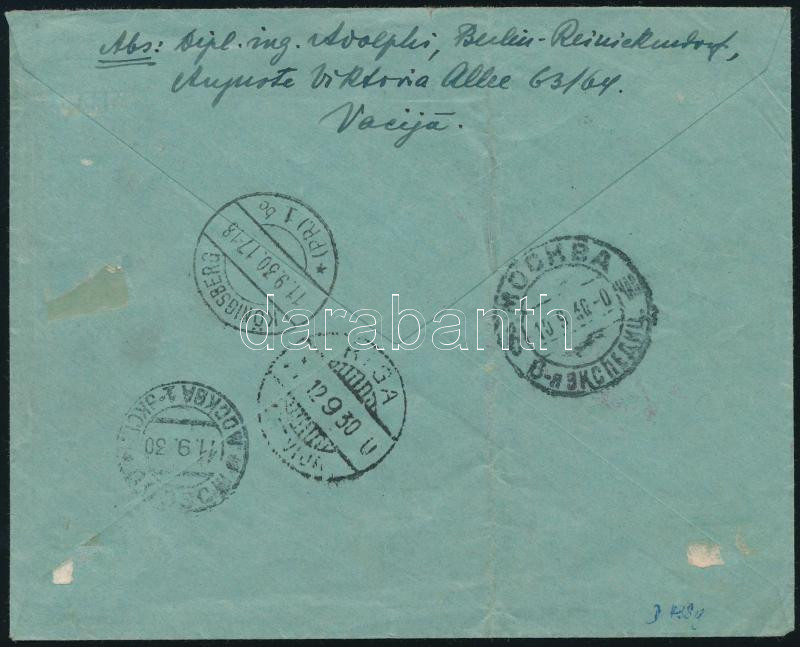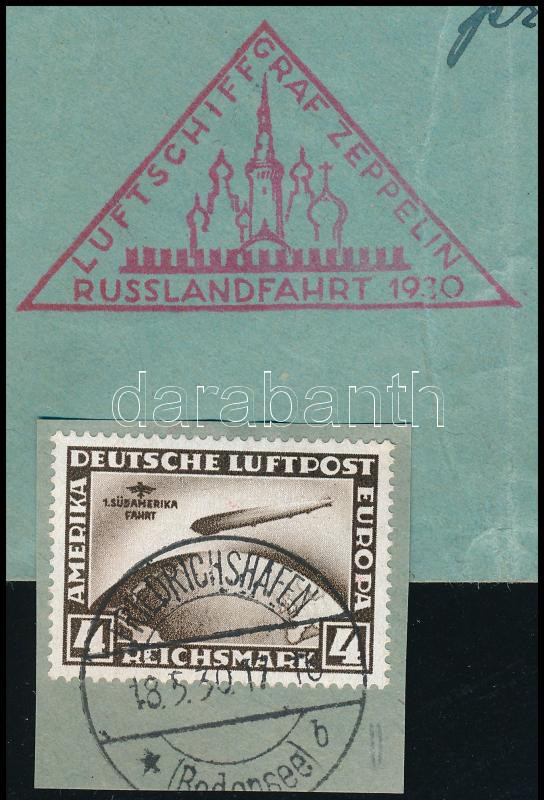 1930 Zeppelin "RUSSLANDFAHRT" levél Südamerikafahrt 2RM bélyeggel + 4RM bélyeg kivágáson / Mi 438 on cover + Mi 439 on cutting (Image)(Image 1)