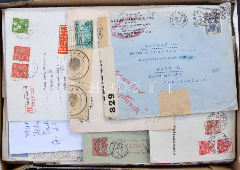 külföldi küldemény jobbakkal hozzá osztrák céglyukasztásos kivágások / ~100 foreign covers with better ones + a few Austrian cuttings with perfin stamps