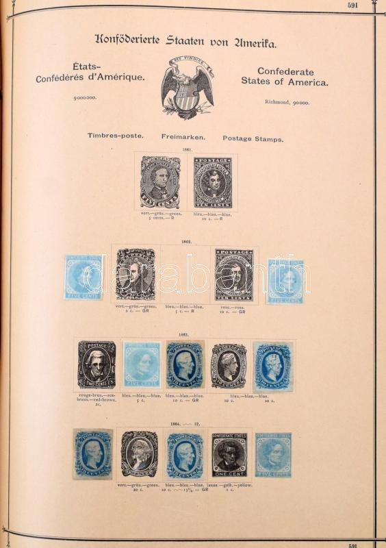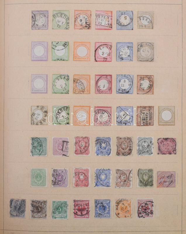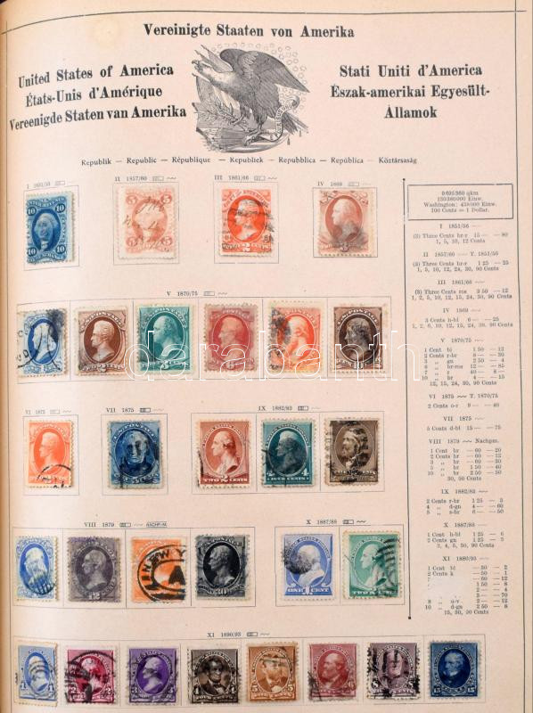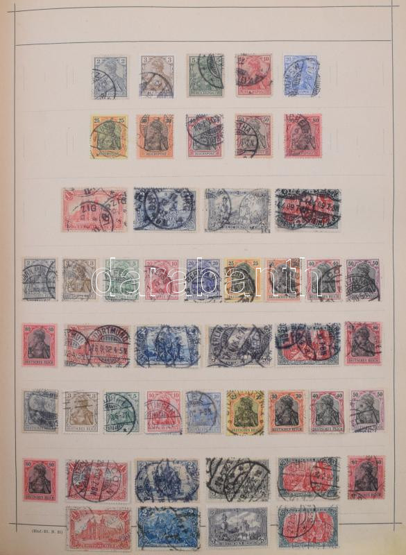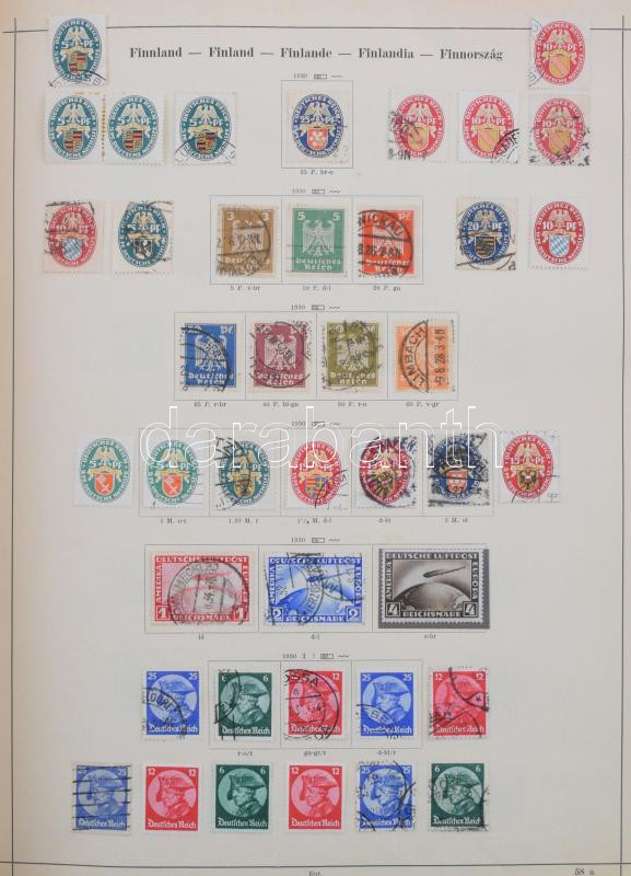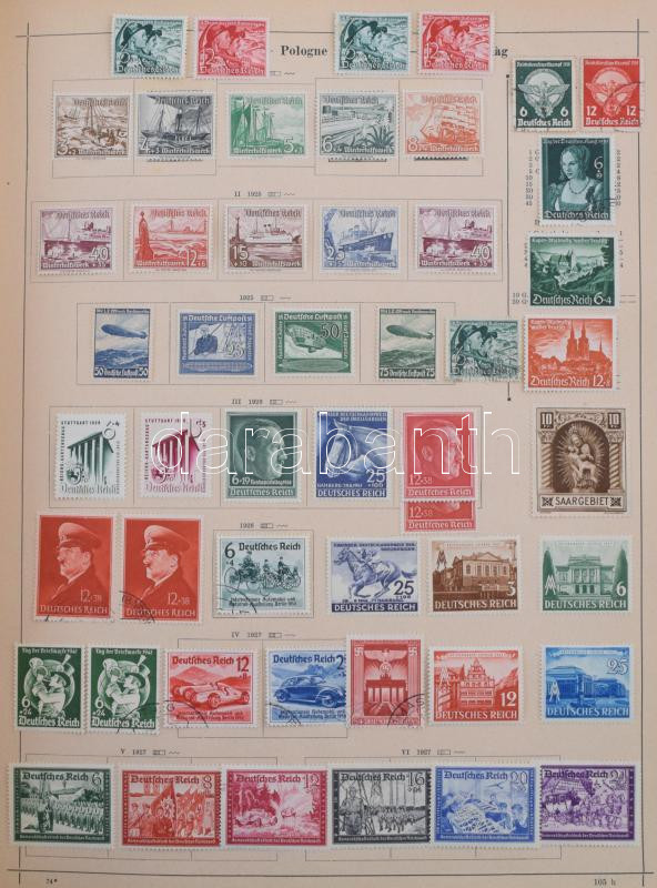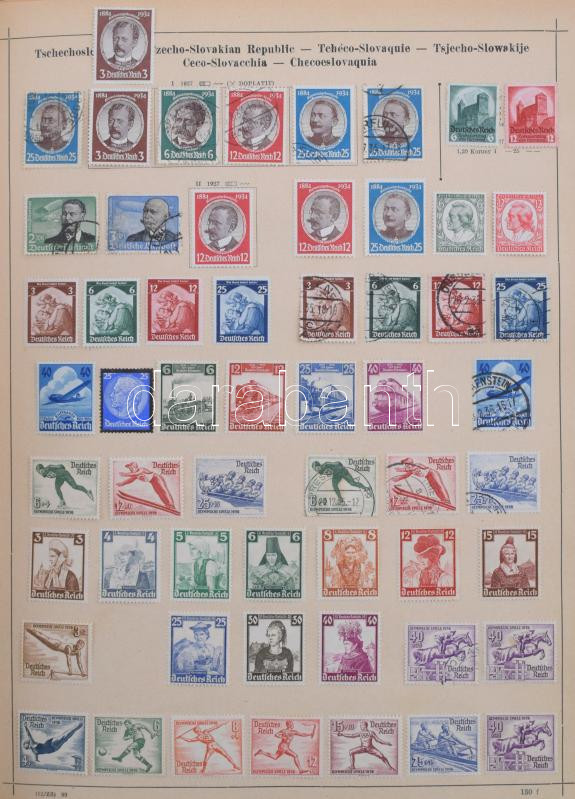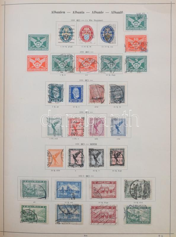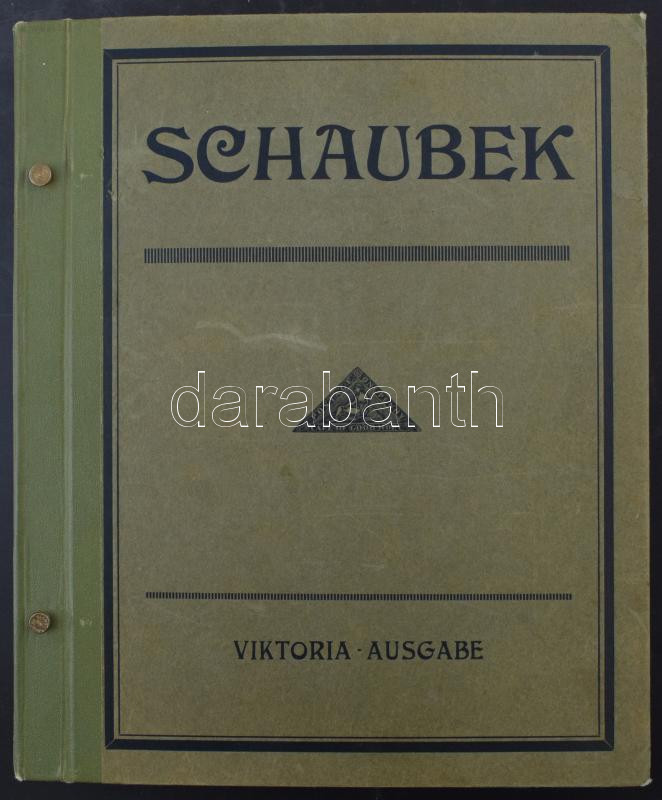 Schaubek régi album, benne rengeteg európai és tengerentúli bélyeg, sok érdekes és jó kiadással, de sok hibás és néhány újnyomat is van közte. Megnézendő tétel! / Schaubek album with a lot of better pieces, but also many faulty stamps and