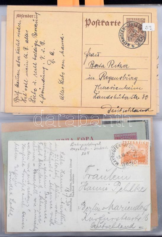 Főleg osztrák és egyiptomi levél tétel, közte levelezőlapok, díjjegyesek min. 100 db küldemény levélberakóban / min. 100 pcs covers, PS-covers, postcards mostly Austrian and Egyptian (Image)(Image 1)