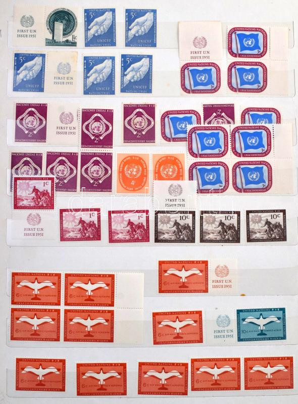 db ENSZ + 700 db francia bélyeg az 1950-1990-es évekből 14 lapos nagy berakóban / 340 UN + 700 French stamps from the 1950s-1990s in a large stockbook (Image)(Image 1)