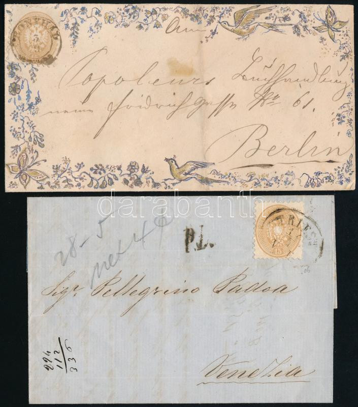 ~1866 magyar és osztrák levél 15kr bérmentesítéssel "BONYHÁD" - Berlin "TRIEST" - Venice (Image)(Image 1)