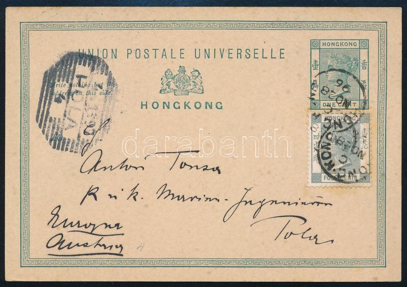 1896 Díjkiegészített díjjegyes levelezőlap Polára, vélhetően osztrák hadihajóról küldve / PS-card with additional franking sent to Pola, possibly from an Austrian navy ship (Image)(Image 1)