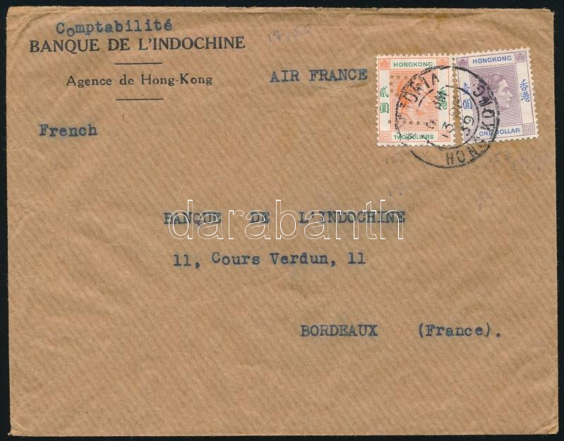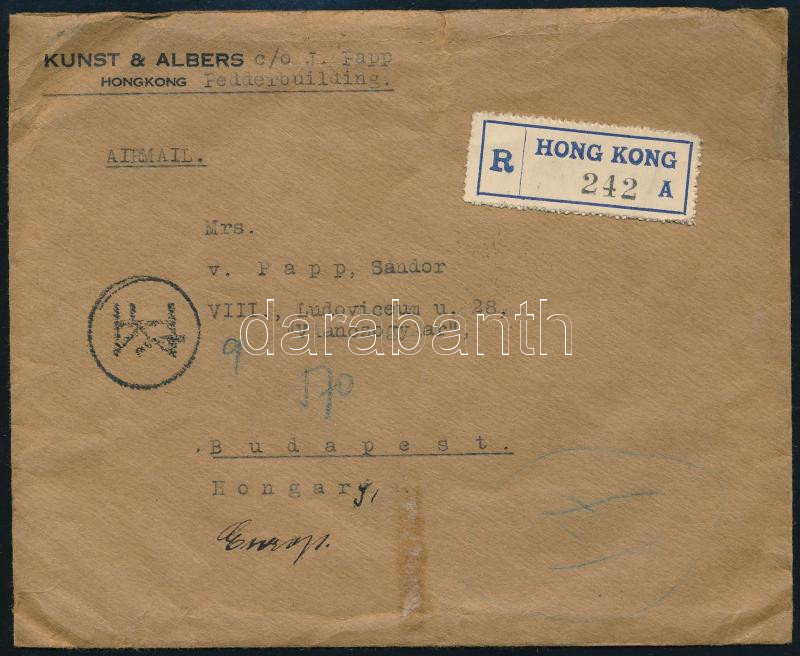 1939 Ajánlott légi levél / registered airmail cover "HONG-KONG" - "ATHINAI" - "BUDAPEST" (Image)(Image 1)