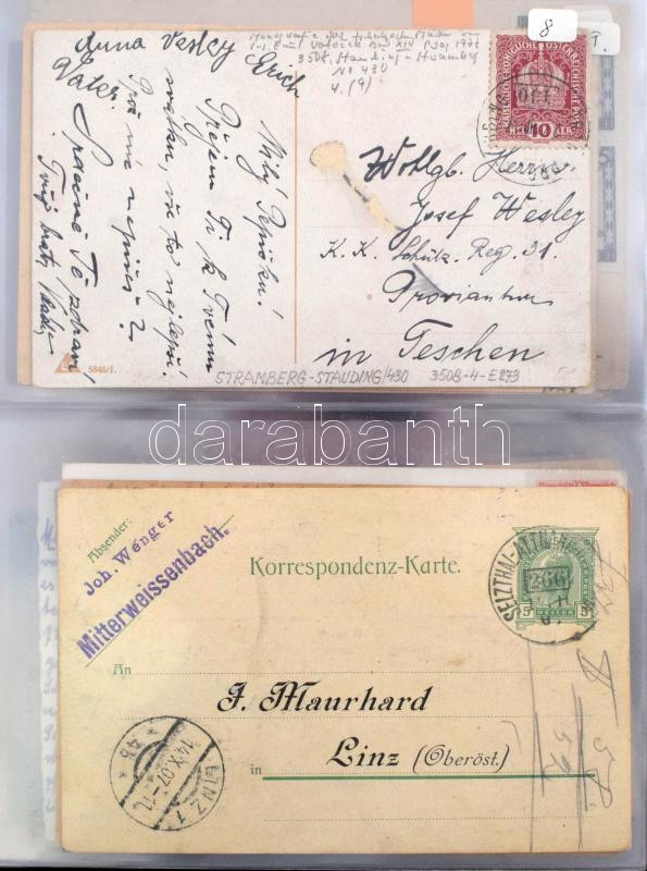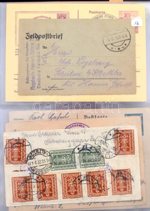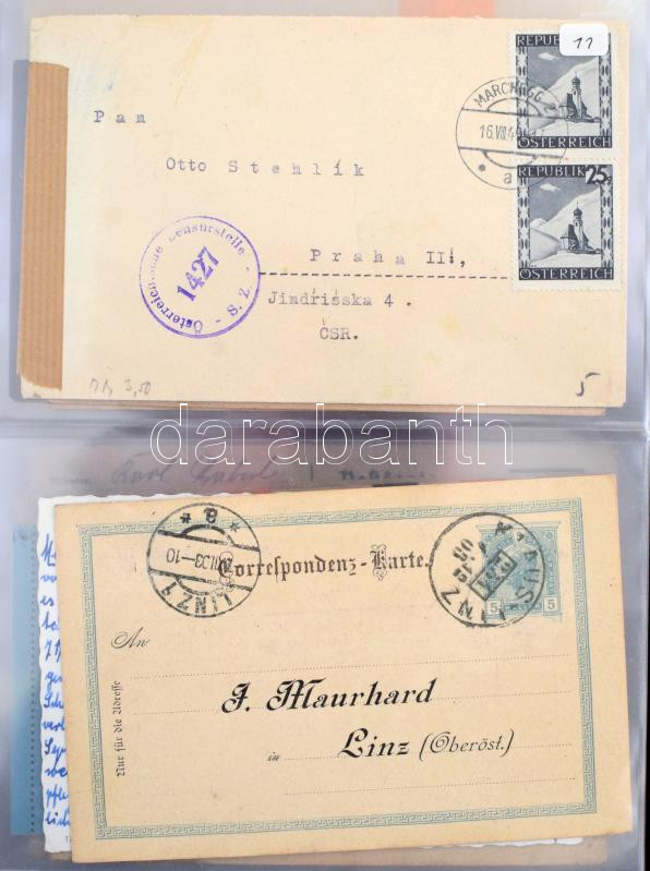 100 db főleg osztrák és magyar küldemény, közte levelezőlapok, díjjegyesek, képeslapok gyűrűs levélberakóban / ca. 100 pcs Ps-cover, postacrds mostly from Hungary and Austria (Image)(Image 1)