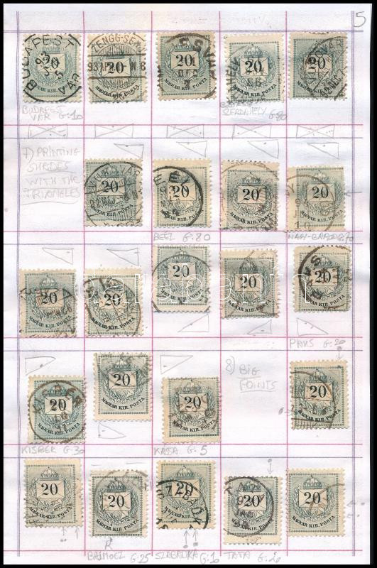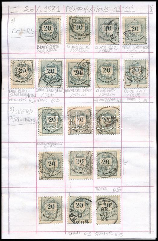 Krajcáros tanulmány gyűjtemény az 1881-es 20kr bélyegből, összesen 155 db bélyeg fogazatváltozatokkal cserefüzetben (Gudlin ~2.700 p) / Study collection of 20kr stamps in booklet, 155 stamps (Image)(Image 1)