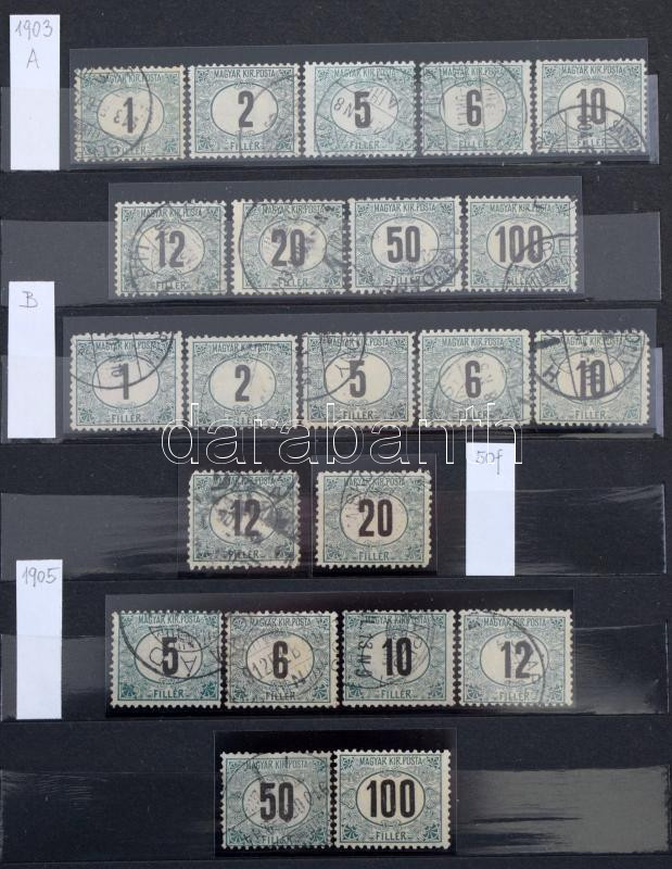Portó gyűjtemény 1903-1987 közepes berakóban 2 érték hiányával, szépen rendezett anyag! (411.780) / Postage due collection 1903-1987 (2 values ??missing)