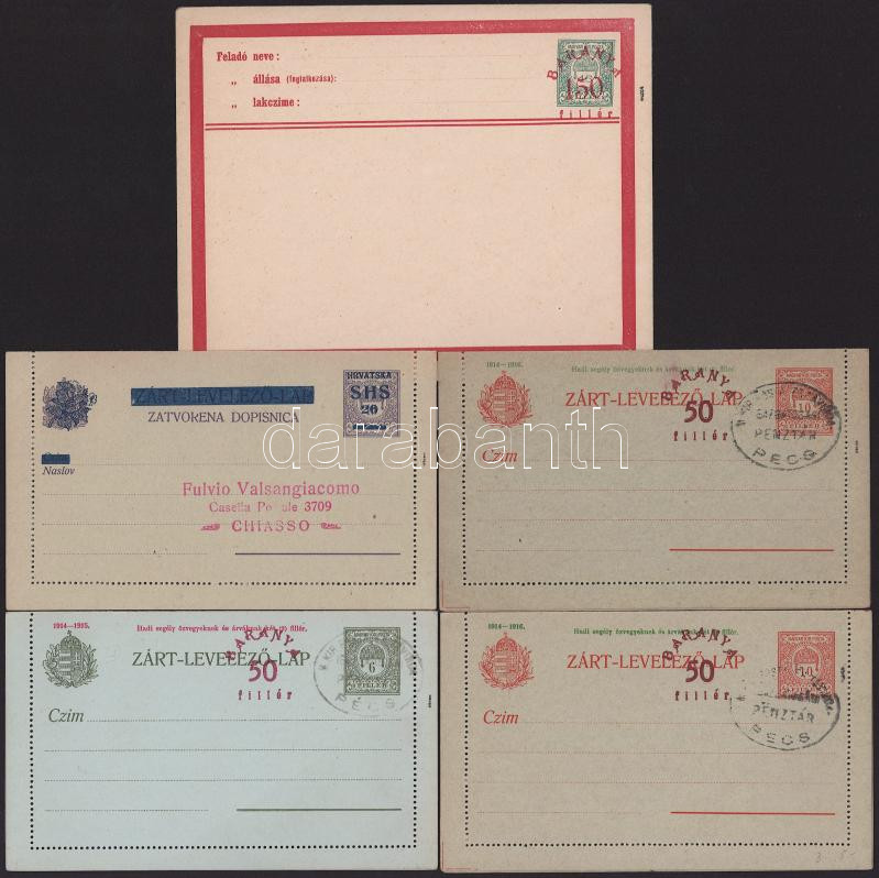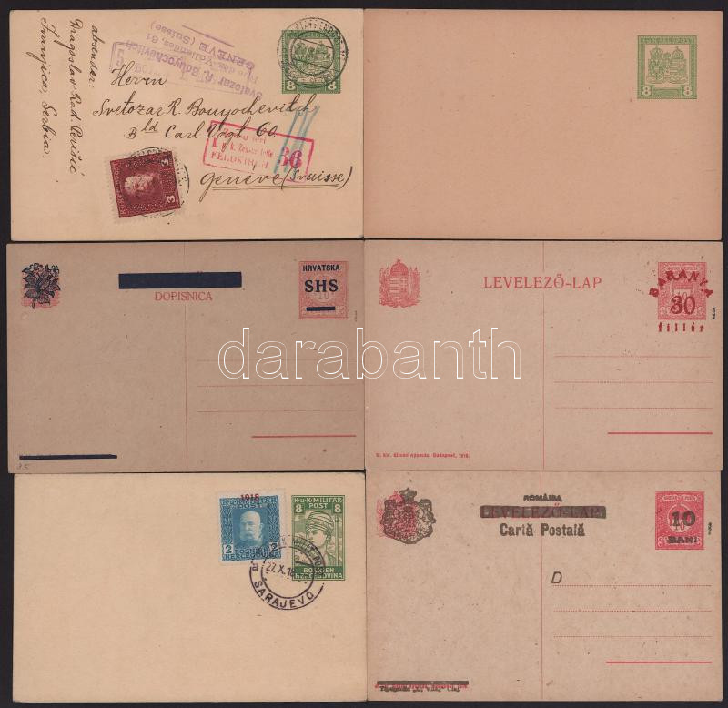 1916-tól 11 db díjjegyes küldemény, benne SHS, Baranya, Románia, Bodor vizsgálójellel + osztrák-magyar tábori posta, Bosznia-Hercegovina (Hodobay 60.400) / Small lot: 11 mostly unused PS covers and postcards (Image)(Image 1)