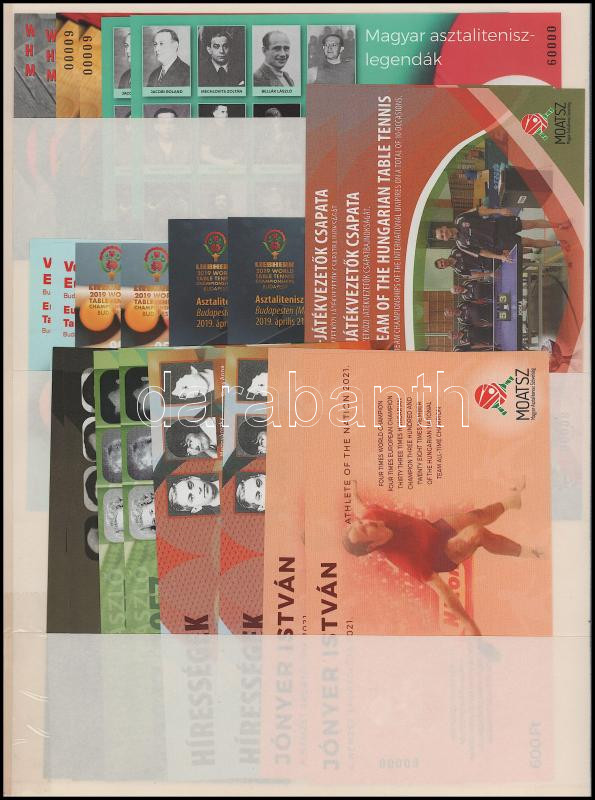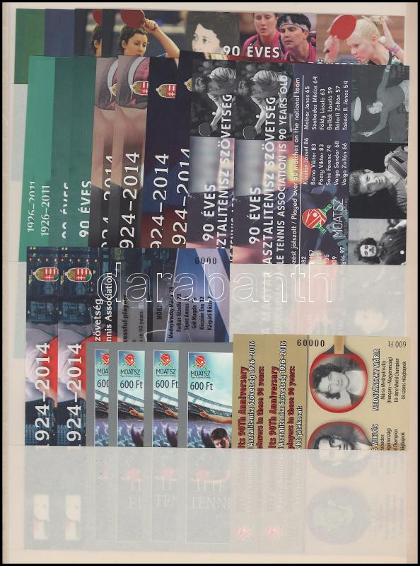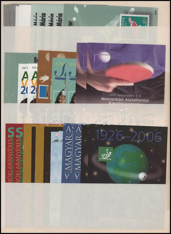 magyar asztalitenisz teljes története 51 klf emlékíven, Barnától Jónyerig, összesen 102 db emlékív, rendes és ajándék változatok, azonos sorszámmal / History of table tennis in Hungary 51 different private souvenir sheets (Image)(Image 1)