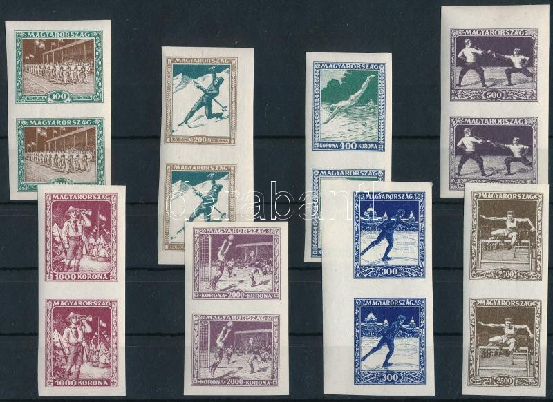 Sport I. vágott sor párokban (220.000) (100K törés) / Mi 403-410 imperforated set in pairs (Mi 403 fold) (Image)(Image 1)