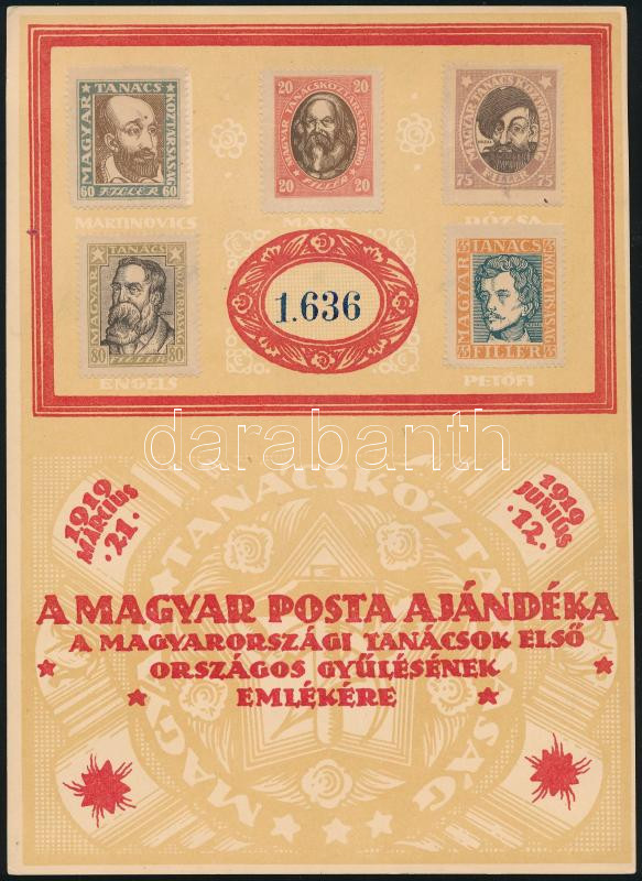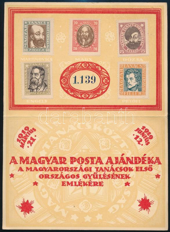 1919 Magyar Tanácsköztársasági arcképek emléklap bélyegzés nélkül / souvenir card without cancellation (Image)(Image 1)