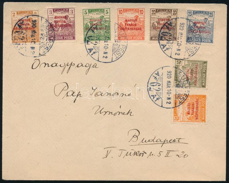 1920 Budapest helyi levél 8 klf bélyeggel (Image)(Image 1)