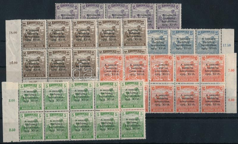 1919 Nemzeti hadsereg sor 10-es tömbökben / Mi 286-290 blocks of 10 (Image)(Image 1)