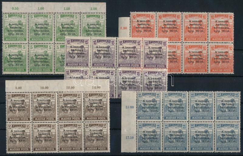 1919 Nemzeti hadsereg sor 8-as tömbökben / Mi 286-290 blocks of 8 Signed: SOCMIS (Image)(Image 1)