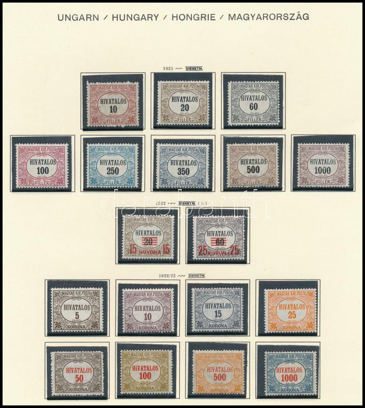 1921 Hivatalos 21 db bélyeg hármaslyukasztással (15K rozsda / stain) (Image)(Image 1)